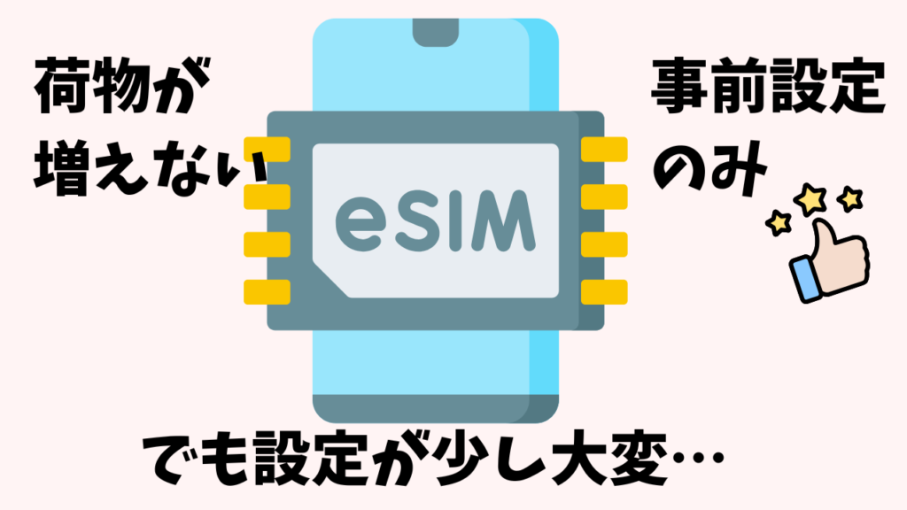 現在、海外旅行の通信手段として主流なのがeSIMとポケットWi-Fiです。eSIMはスマホに直接通信プランを入れる方法で、物理的なSIMカードや端末が不要。